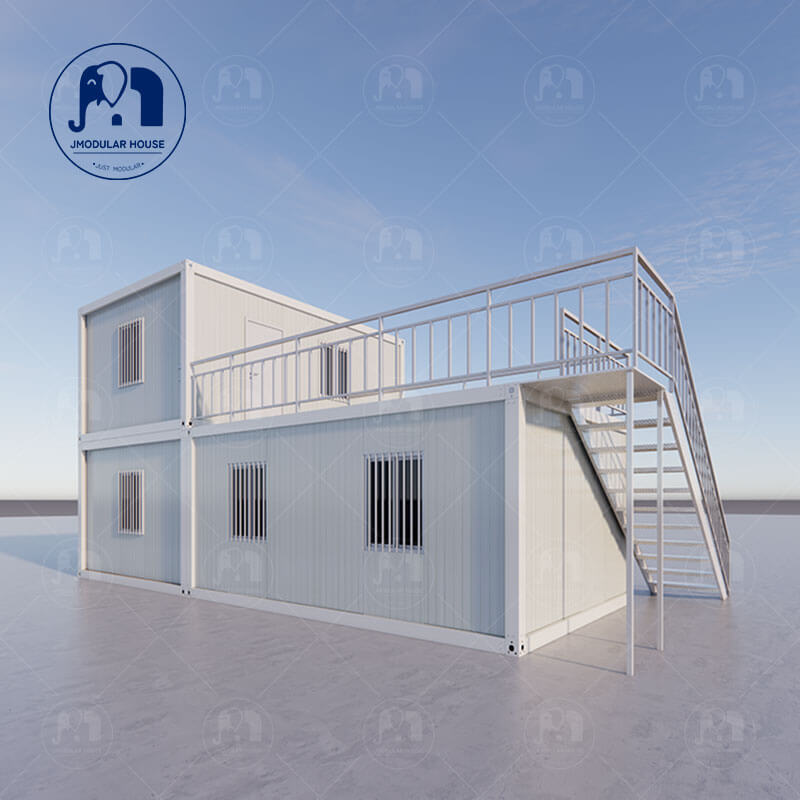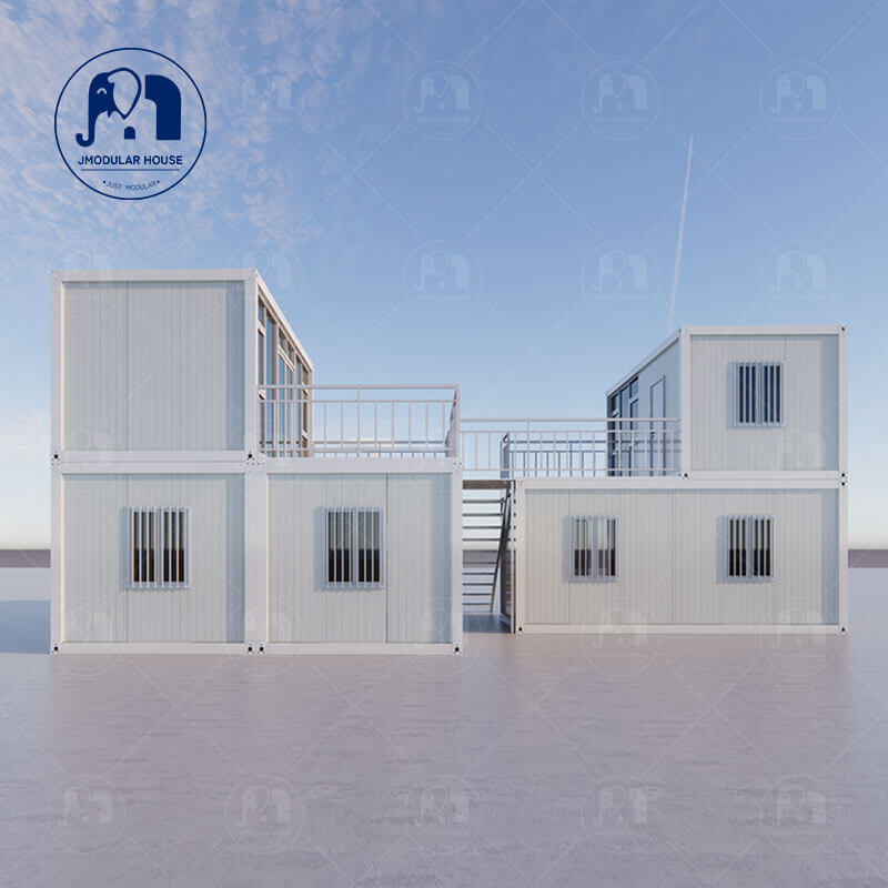 Customers can add extra parts for the container house. These additions include stairs, terraces, glass guardrails, triangular roofs, glass walls, toilets, canopies, corridors, or steel guardrails.