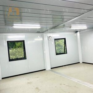 Wall panels are made of 50mm rock wool sandwich panels, and can be upgraded to 75mm and 100mm thickness, which i s better for extreme cold and hot weather